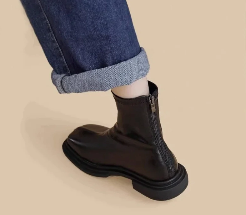 Acabamento Impecável: Detalhes como o fechamento em zíper lateral e o bico quadrado adicionam um toque de sofisticação e praticidade.
