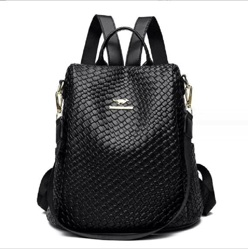 - 1x Mochila Feminina Preta de Couro Modelo Multifuncional.